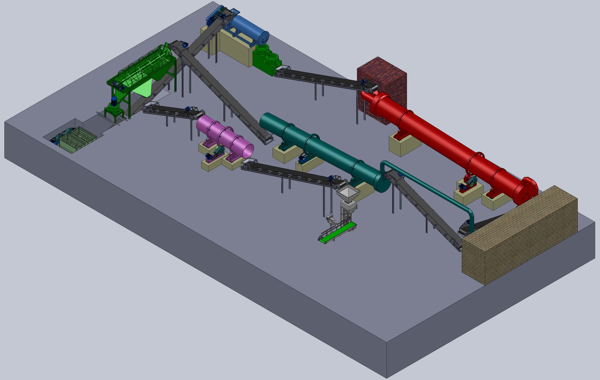 小型有機(jī)肥生產(chǎn)線前期發(fā)酵流程徐經(jīng)理! 、菌種與發(fā)酵原料混合發(fā)酵后,發(fā)酵過程中使用翻堆機(jī)進(jìn)行翻堆。 、腐熟原料經(jīng)過粉碎、過篩再通過提升機(jī)到達(dá)制粒車間。 、機(jī)肥經(jīng)過原料預(yù)混機(jī)混合后進(jìn)入造粒設(shè)備進(jìn)行制粒。 、下來造粒后的有機(jī)肥進(jìn)入拋粒設(shè)備進(jìn)行拋圓。 、圓后的顆粒