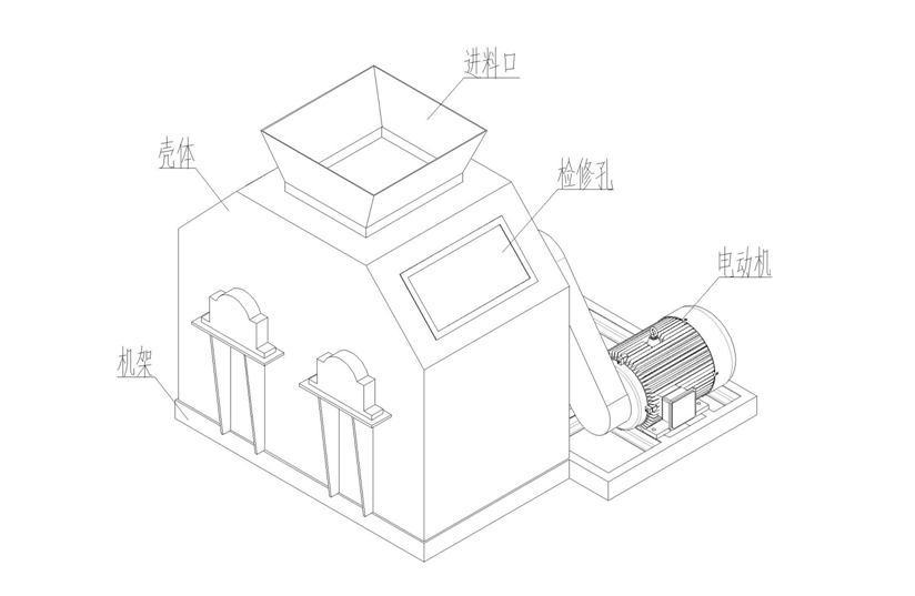 結(jié)構(gòu):本機(jī)由機(jī)架、殼體、雙破碎軸,傳動(dòng)機(jī)構(gòu)等部件組合而成。
